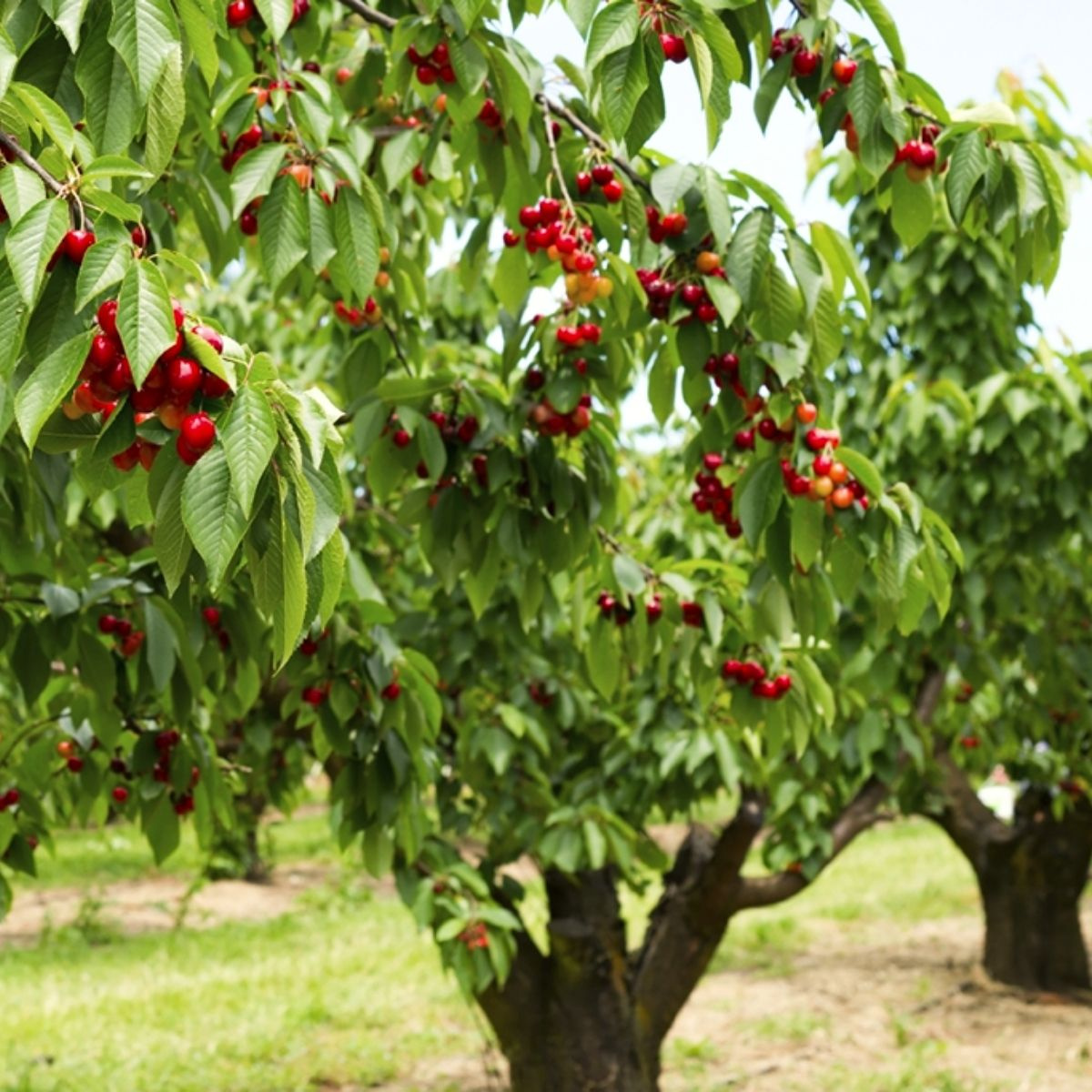 Der Rivan-Süßkirschbaum zeichnet sich durch ein mittleres Wachstum aus, wodurch er relativ pflegeleicht ist und keinen komplizierten Schnitt erfordert. Er bildet eine kugelförmige, mäßig dichte Krone und lässt sich gut formen und schneiden. Ausgewachsene Exemplare erreichen in der Regel eine Höhe von 4–5 Metern, was eine bequeme Ernte der Früchte ermöglicht. Die Sorte kommt relativ schnell in die Fruchtphase – die ersten Früchte erscheinen bereits im 2. oder 3. Jahr nach der Pflanzung. Die Sorte eignet sich sowohl für Hobbypflanzungen als auch für Obstgärten mit Obstbäume.