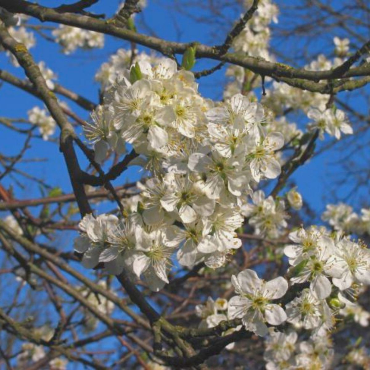 Der Pflaumenbaum Presenta blüht durchschnittlich spät, meist Mitte April. Die Blüten sind weiß, relativ groß und sehr attraktiv für bestäubende Insekten. Die üppige Blüte ist einer der größten Vorzüge dieser Sorte – in dieser Zeit wird der Baum zu einer echten Zierde des Gartens.