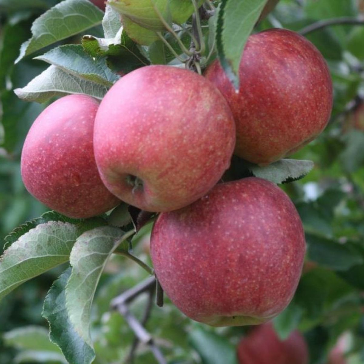 Der Apfelbaum Jonagored Supra ist eine verbesserte Version der weltweit bekannten und geschätzten Sorte Jonagored, die wiederum von der berühmten Jonagold abstammt. Die Sorte entstand in Belgien als natürliche Mutation. Sie zeichnet sich durch eine intensiv rote Färbung, einen ausgezeichneten Geschmack und eine hohe Fruchtbarkeit aus. Dank ihrer Vorzüge eroberte sie schnell die Herzen der Gärtner und hat sich dauerhaft in Obstplantagen und Hausgärten etabliert. Heute gilt sie als eine der besten Sorten der Jonagold-Gruppe. Der Jonagored-Supra-Apfelbaum ist einer der Obstbäume, die für Anfänger empfohlen werden, die einen Apfelbaum suchen, der Schönheit, Langlebigkeit und ausgezeichneten Geschmack mit geringen Anforderungen an Anbau und Pflege verbindet.