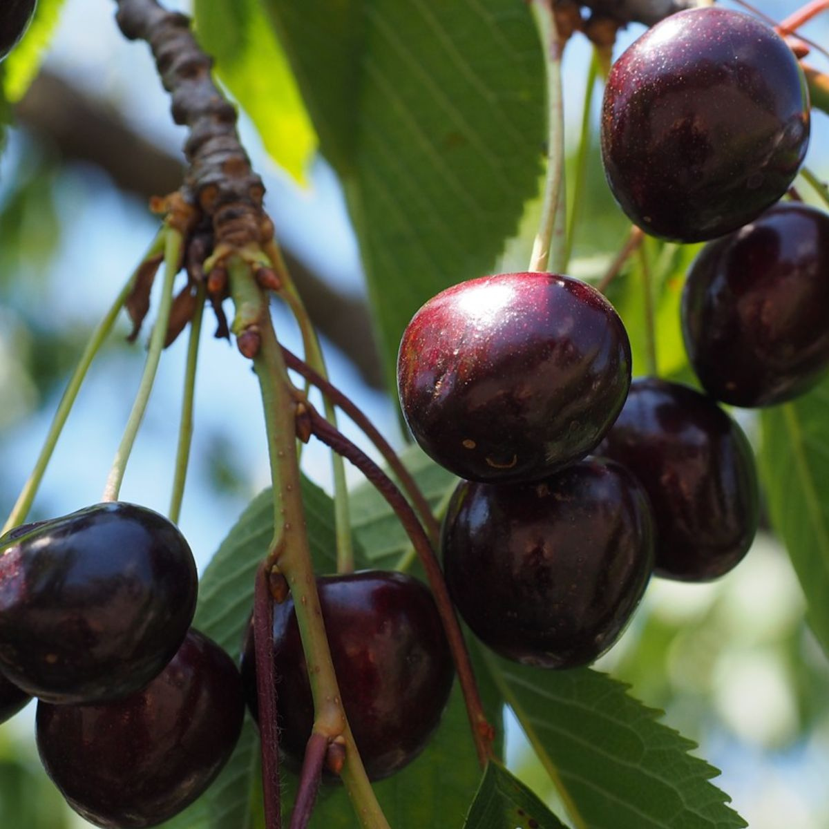 Die halbzwergige Süßkirsche ‘Fabiola’ ist eine Sorte, die in kurzer Zeit Ansehen bei Hobbygärtnern und Erwerbsgärtnern gewonnen hat, die eine späte, verlässliche Dessertsorte mit dunkler Schale und ausgezeichnetem Geschmack suchen. In Tschechien als Kreuzung der bewährten Klassiker ‘Kordia’ × ‘Van’ gezüchtet, vereint sie, was man von modernen Süßkirschen erwartet: große Früchte (Größe), festes Fruchtfleisch, regelmäßigen Ertrag sowie einen Wuchs, der sich im begrenzten Raum des Gartens leicht kontrollieren lässt. ‘Fabiola’ passt gut zu europäischen Gärten und Obstbäume, denn sie reift gegen Ende des Sommers, wenn das Wetter oft die Ernte von Früchten mit harmonisch ausbalanciertem Geschmack begünstigt.