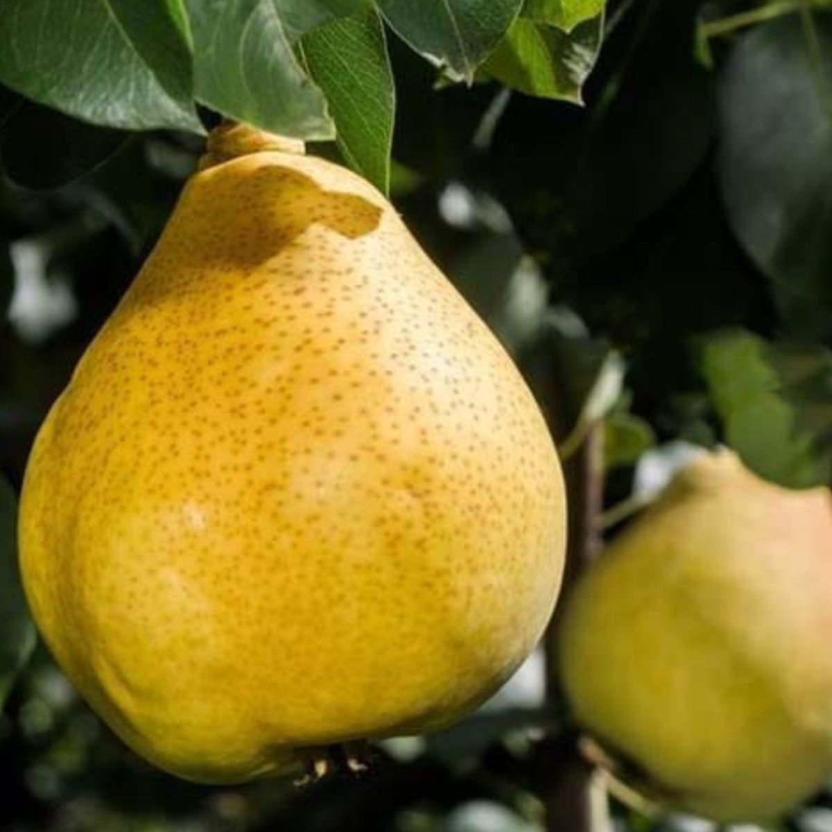 Die Zwergbirne Sunrise wächst langsam und gleichmäßig und bildet eine dichte, niedrige Krone mit harmonischem Wuchs. Ihre Triebe wachsen kompakt um den zentralen Leittrieb, was eine elegante, geordnete Form ergibt. Die Blätter sind glänzend, sattgrün und dicht angeordnet, wodurch der Baum das ganze Jahr über gesund und attraktiv wirkt. Durch ihre geringe Größe ist Sunrise besonders pflegeleicht, und die Ernte gestaltet sich bequem und sicher. Bereits im zweiten Jahr nach der Pflanzung erscheinen die ersten köstlichen Birnen. In Kübeln, auf Terrassen oder als Teil kleiner Obstbaumreihen ist sie ein echter Blickfang.
