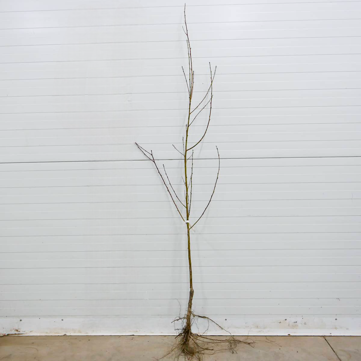 Der Nektarinenbaum Arctic Jay wächst mittelstark und bildet eine ausgewogene, leicht ausladende Krone. Unter günstigen Bedingungen erreicht er eine Höhe von 3 bis 4 Metern, was Pflege und Ernte erleichtert. Die Triebe sind kräftig, gut verzweigt und gleichmäßig verteilt, wodurch das Sonnenlicht alle Bereiche der Krone erreicht und eine gleichmäßige Fruchtreife gewährleistet. Die Blätter sind länglich, glänzend und tiefgrün; im Herbst verfärben sie sich goldgelb und verleihen dem Baum einen dekorativen Charakter. Dank seines gleichmäßigen Wachstums lässt sich Arctic Jay leicht formen und pflegen, was sie zu einer idealen Sorte für kleine Hausgärten oder kompakte Pflanzungen macht.